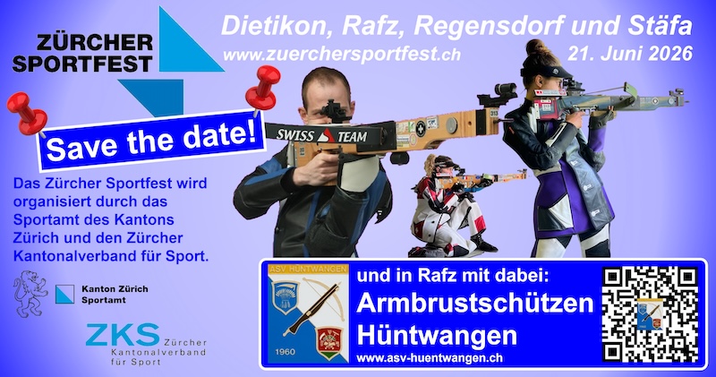 Ein besonderer Leckerbissen wird in Rafz geboten: Die Armbrustschützen Hüntwangen werden sich am 21. Juni am Zürcher Sportfest präsentieren! Das Datum solltest Du Dir schon heute reservieren und Deinen Besuch am 10. Zürcher Sportfest fix in Deinem Terminplaner eintragen!