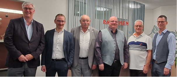 Das nachfolgende Bild zeigt die Bankleitung der Raiffeisen Schänis-Amden und drei Weesner Vertreter des OK Eidg. Armbrustschützenfest 2026 nach der Vertrags-unterzeichnung.